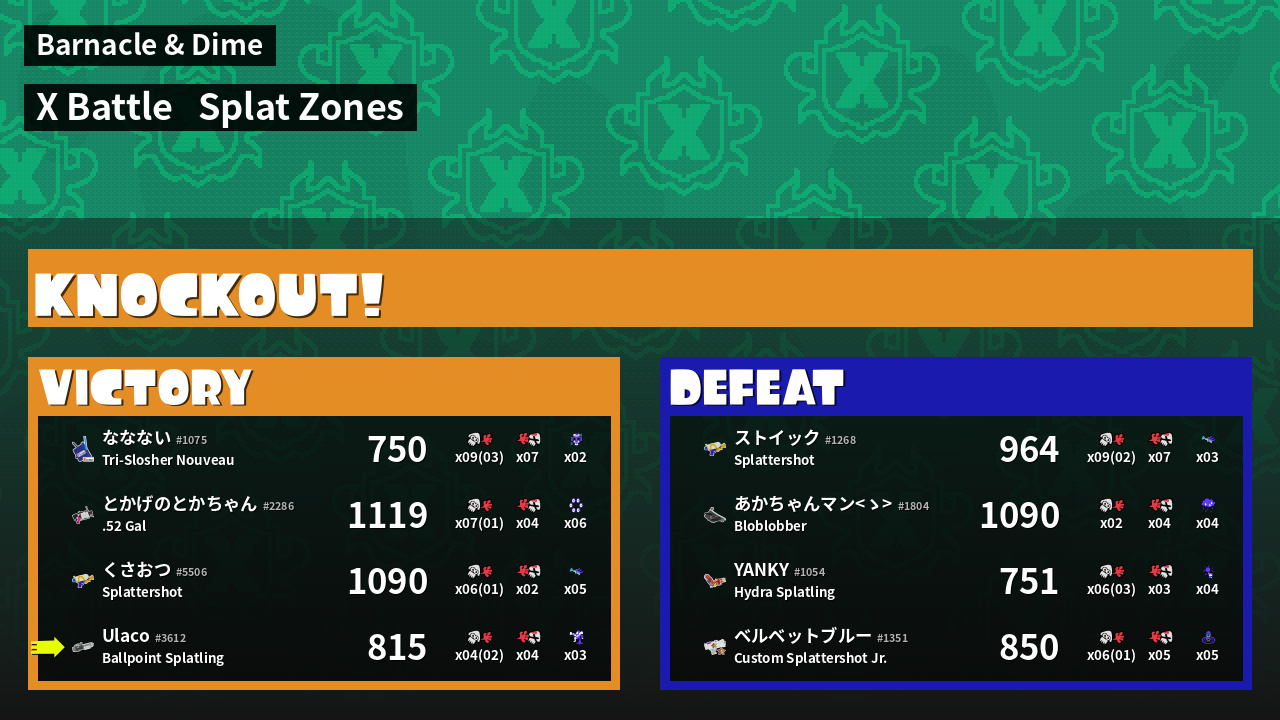 | Medals | #1 Inkjet User #2 Splat Zone Inker #2 Splat Assister | ||