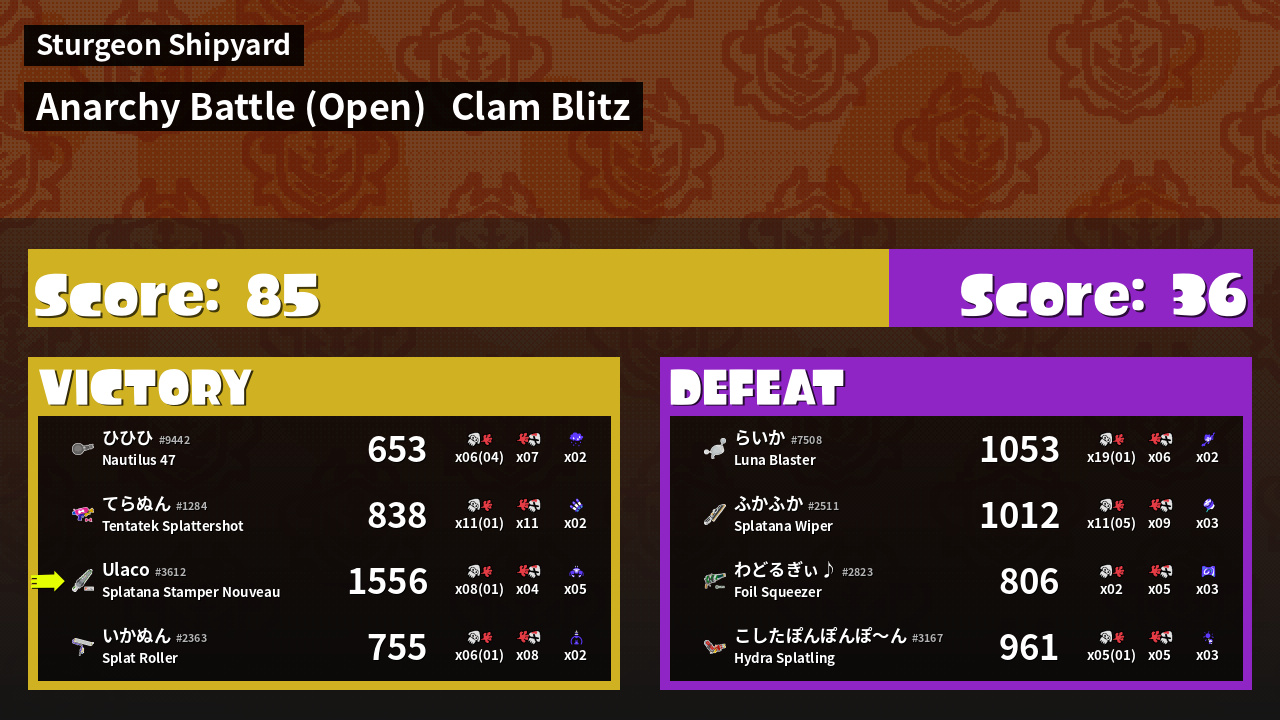 | Mode | Clam Blitz - Anarchy Battle (Open) | ||