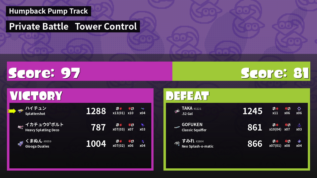 | Weapon | Splattershot ( Suction Bomb / Trizooka) | ||
