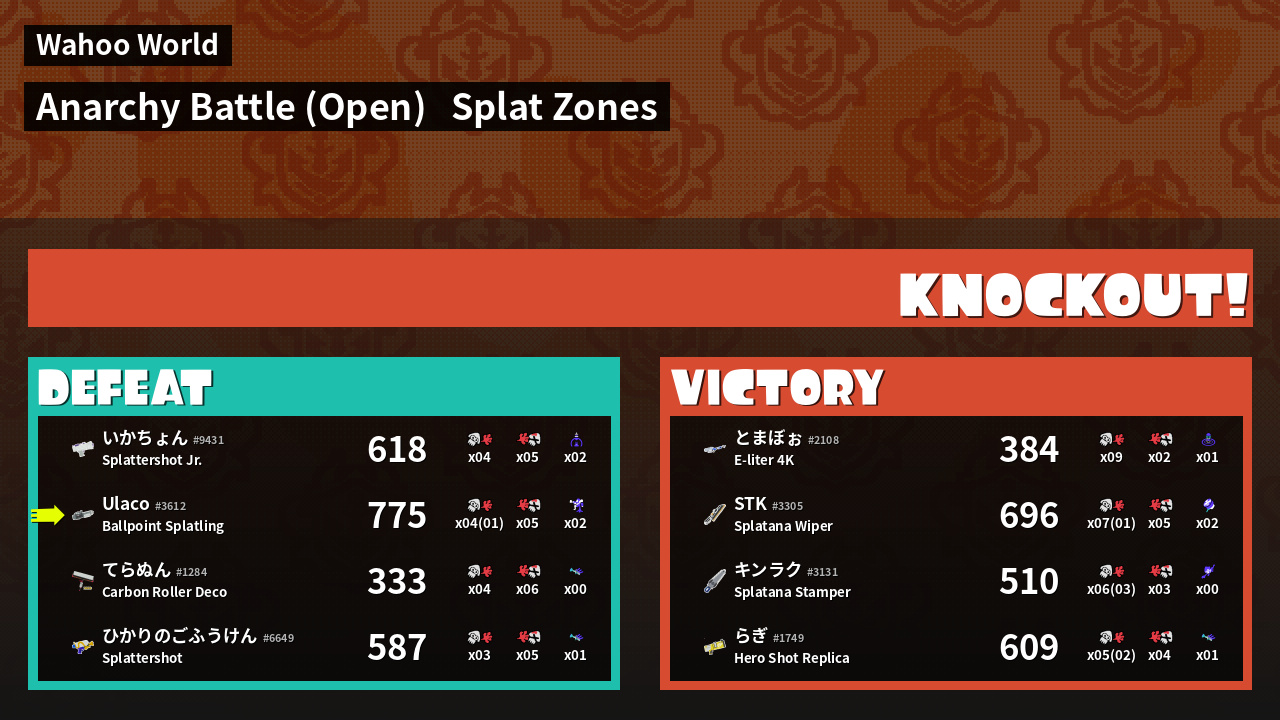 | Medals | #1 Overall Splatter #1 Splat Zone Guard #1 Turf Inker | ||