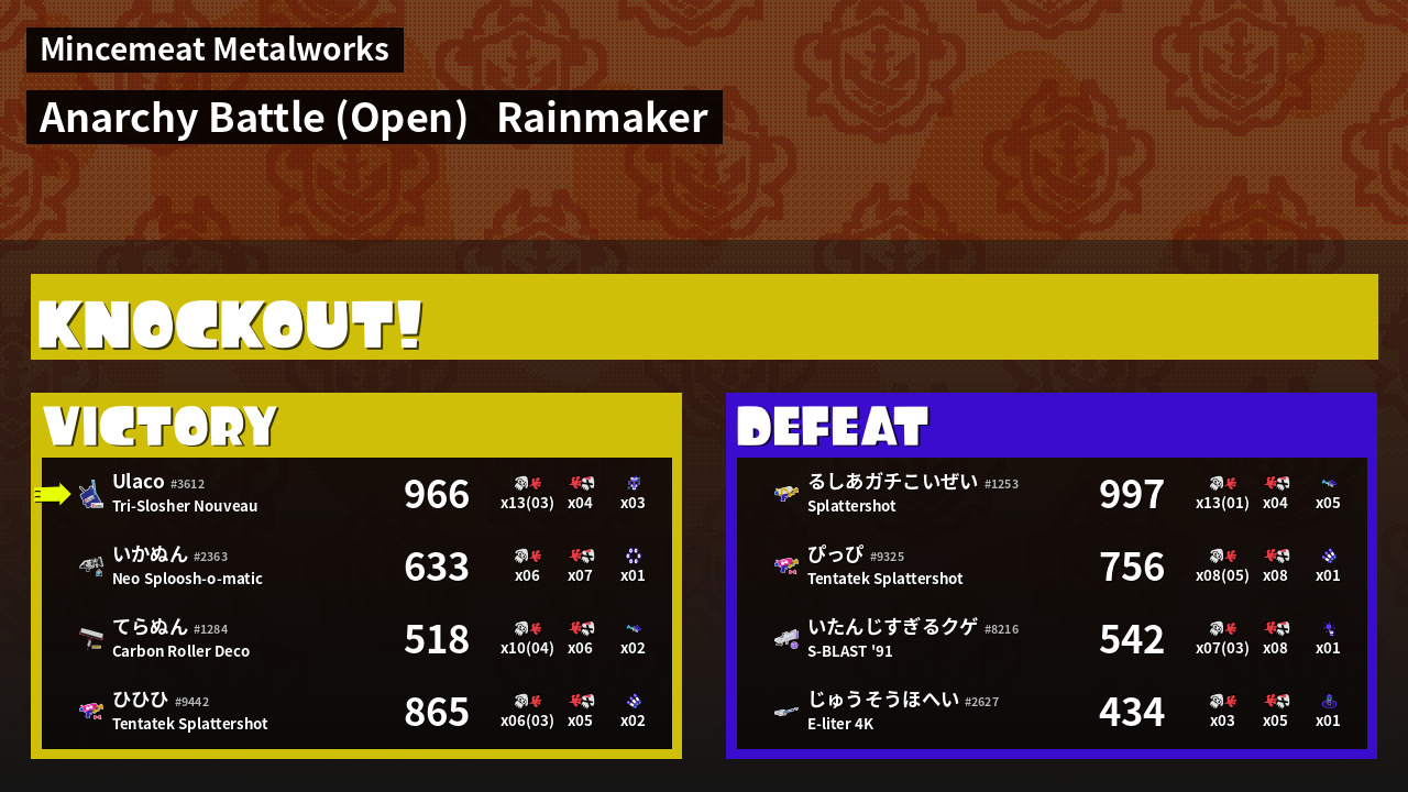 | Mode | Rainmaker - Anarchy Battle (Open) | ||