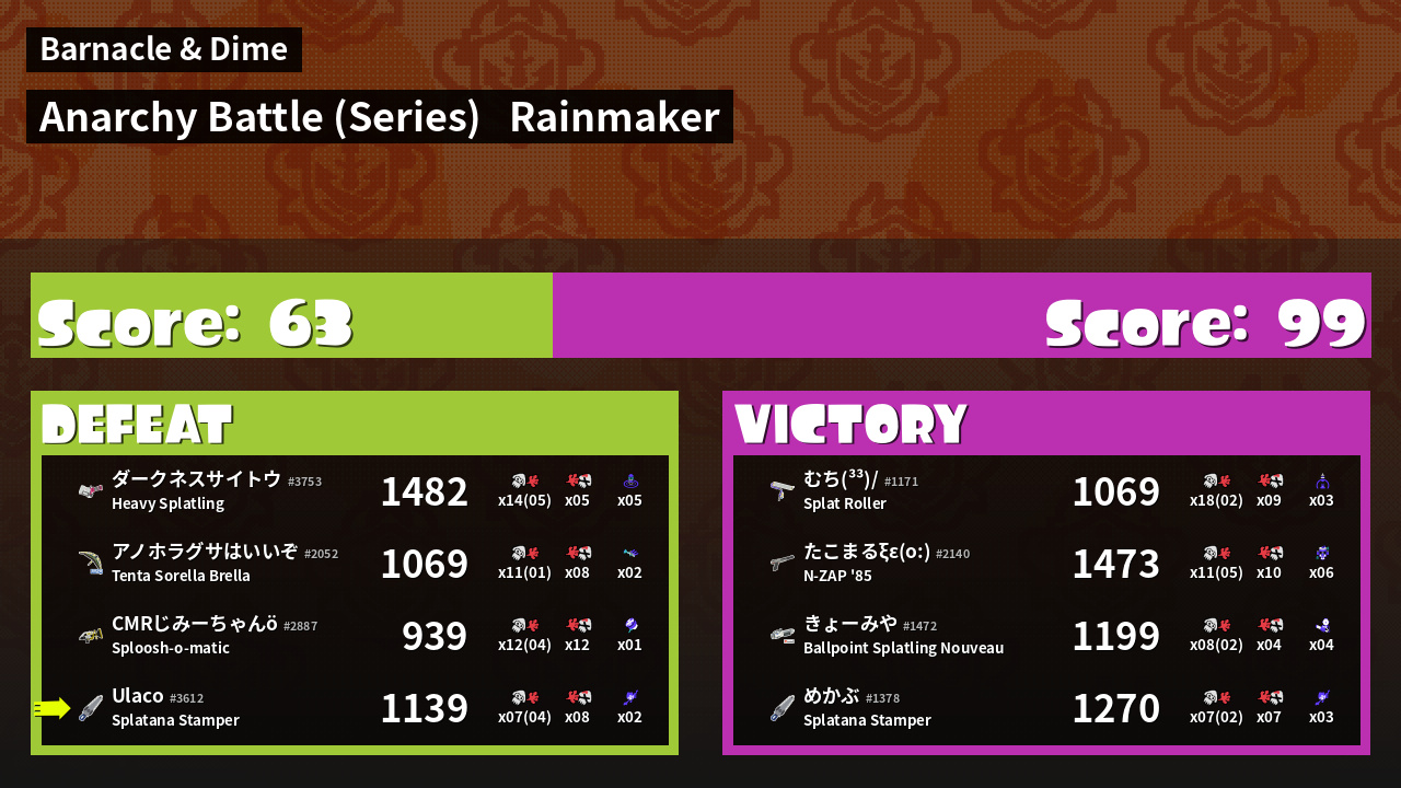| Mode | Rainmaker - Anarchy Battle (Series) | ||