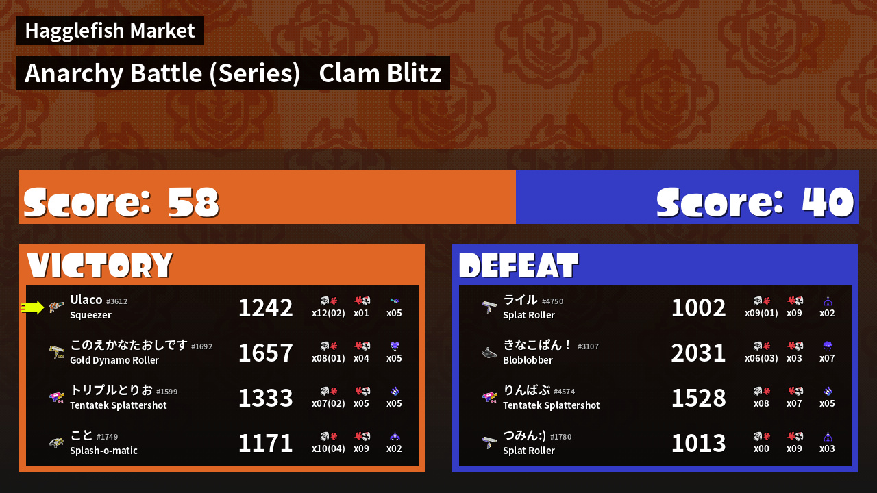 | Mode | Clam Blitz - Anarchy Battle (Series) | ||