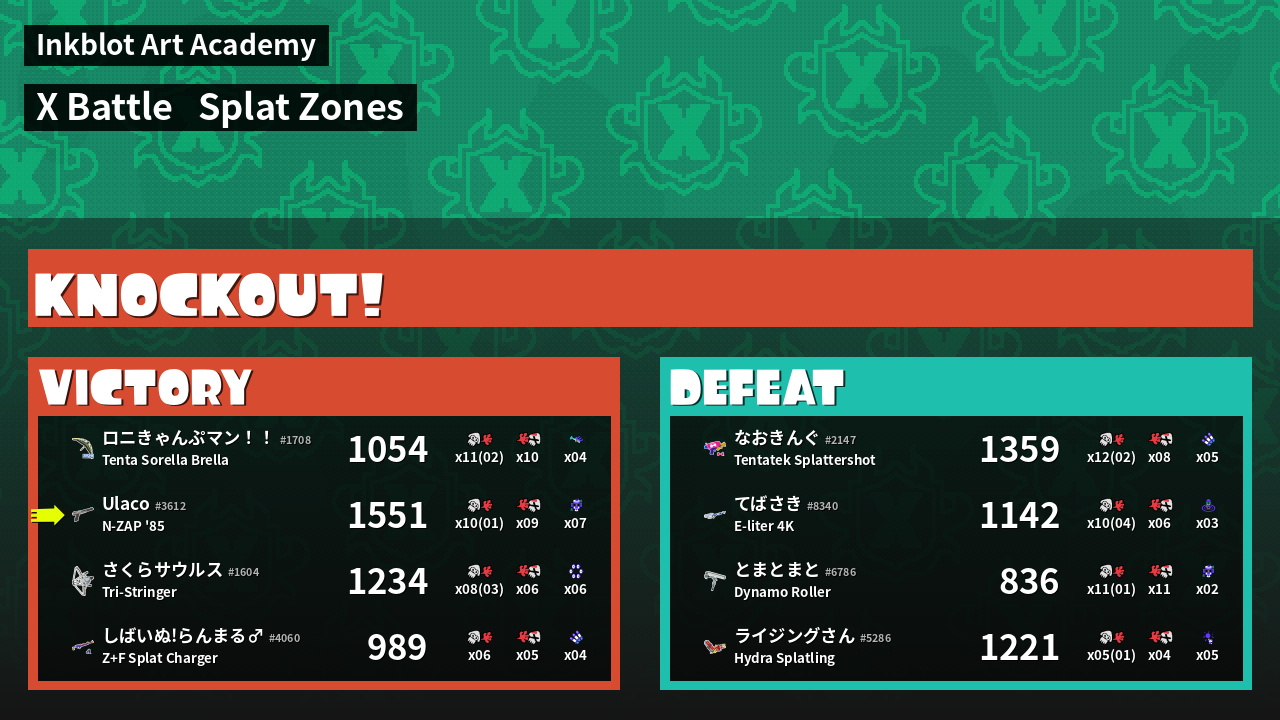 | Mode | Splat Zones - X Battle | ||