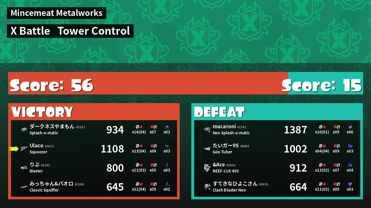 | Mode | Tower Control - X Battle | ||