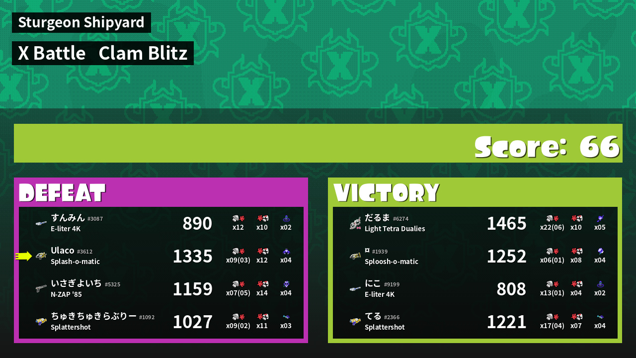 | Mode | Clam Blitz - X Battle | ||