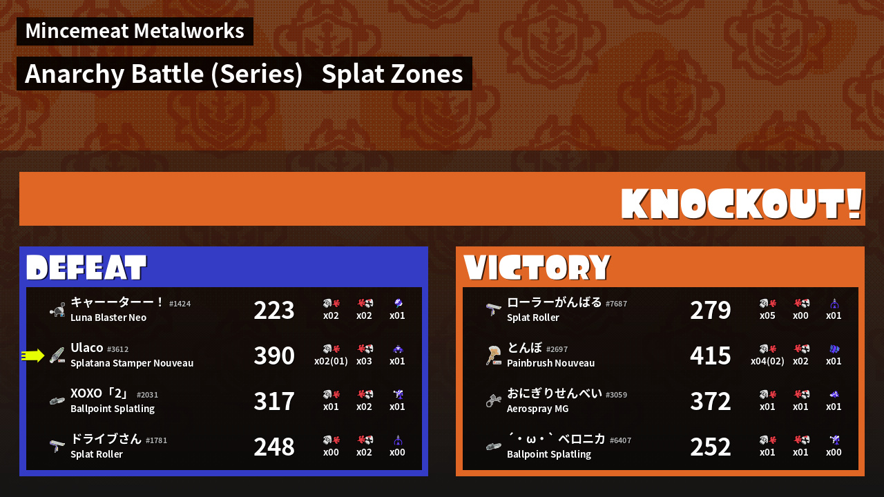 | Medals | #1 Overall Splatter #1 Splat Zone Inker #1 Turf Inker | ||