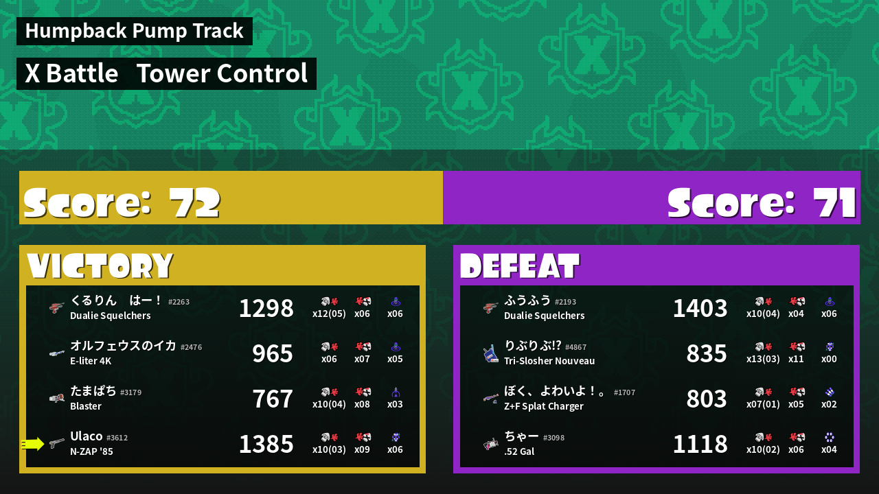 | Medals | #1 Turf Inker #1 Enemy Splatter #1 Checkpoint Breaker | ||