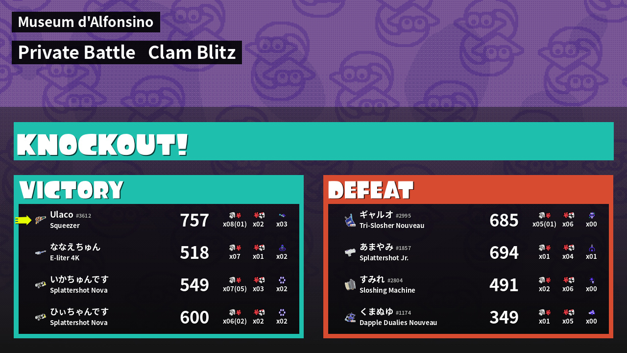 | Mode | Clam Blitz - Private Battle | ||