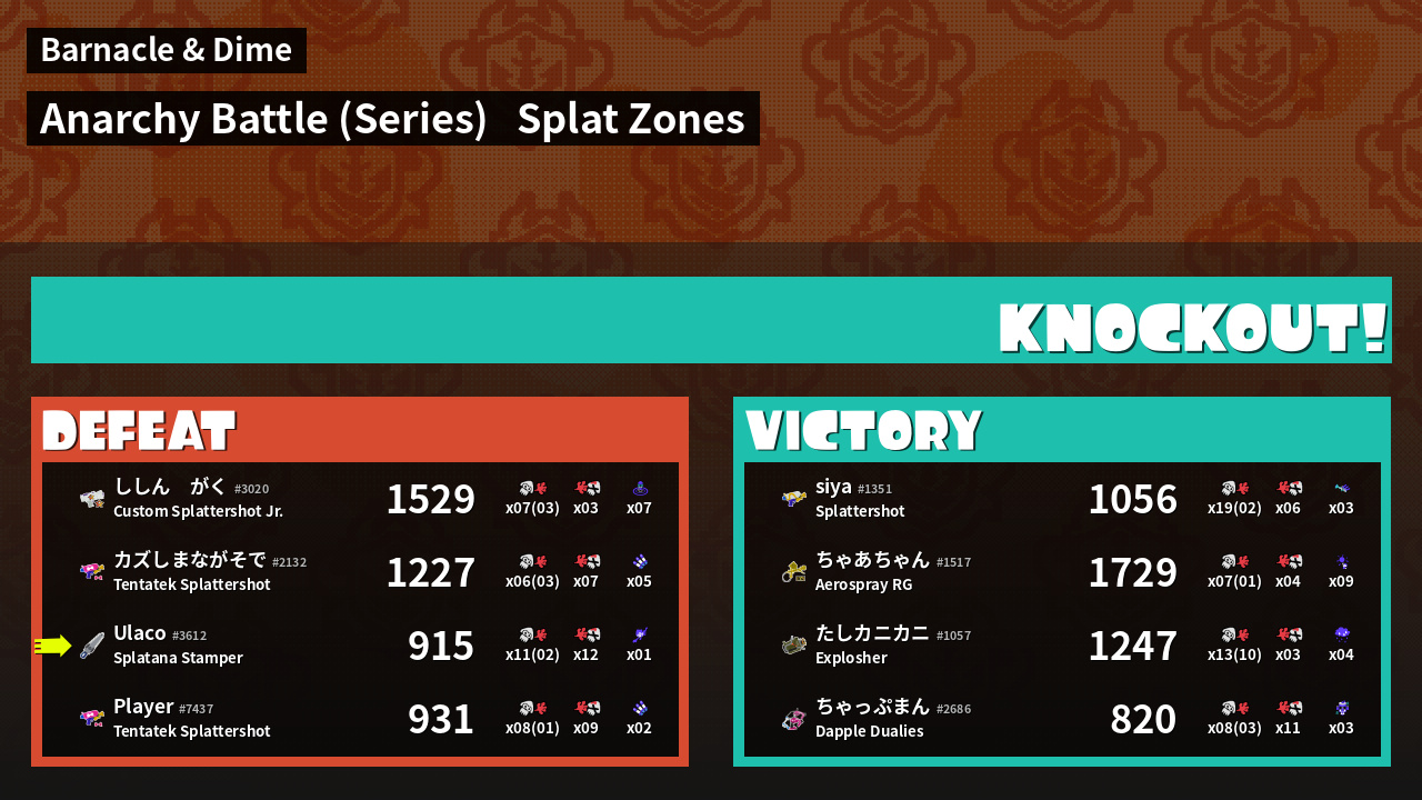 | Mode | Splat Zones - Anarchy Battle (Series) | ||