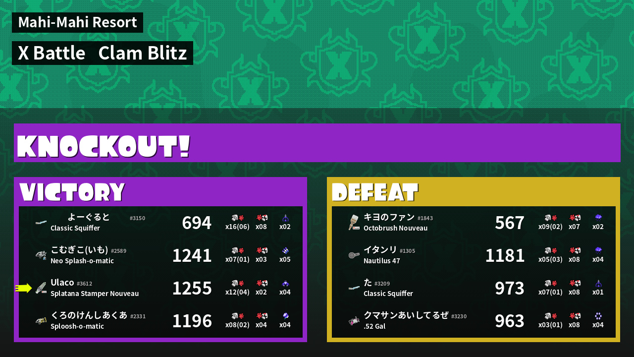 | Weapon | Splatana Stamper Nouveau ( Toxic Mist / Crab Tank) | ||