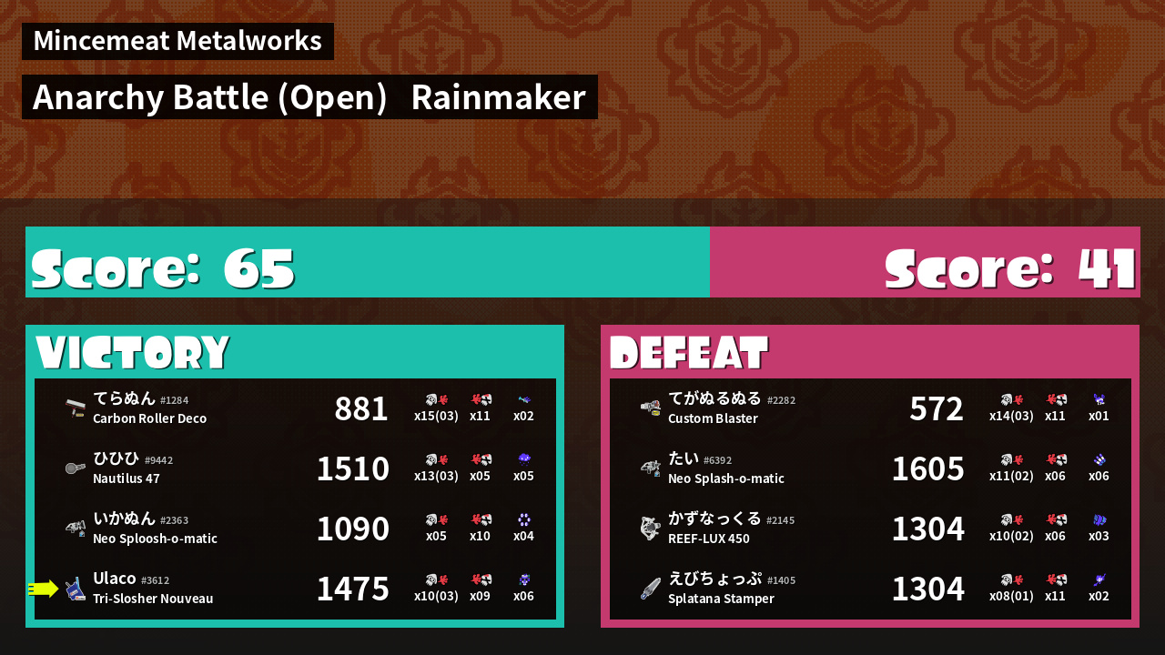| Mode | Rainmaker - Anarchy Battle (Open) | ||