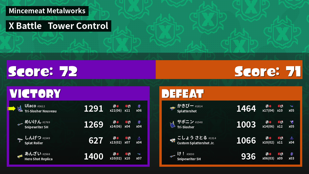 | Mode | Tower Control - X Battle | ||