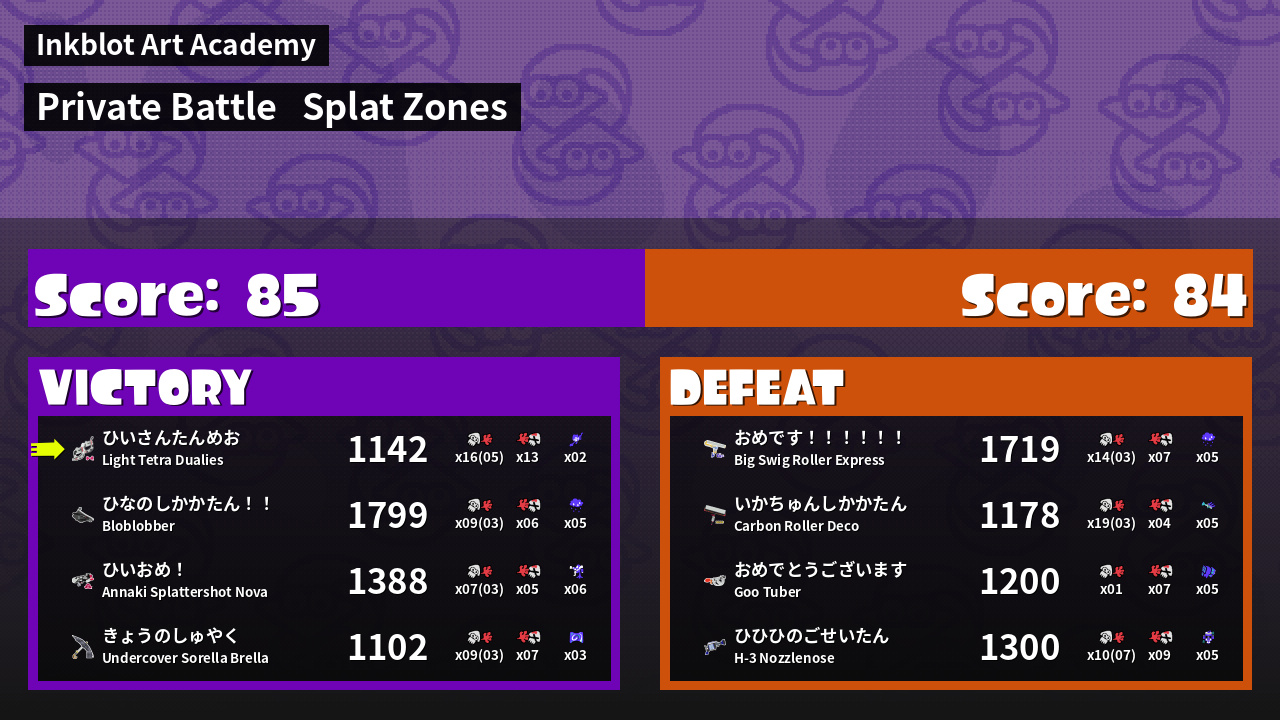 | Mode | Splat Zones - Private Battle | ||
