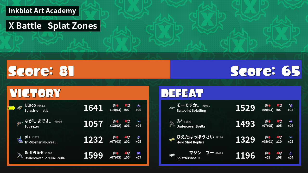 | Mode | Splat Zones - X Battle | ||