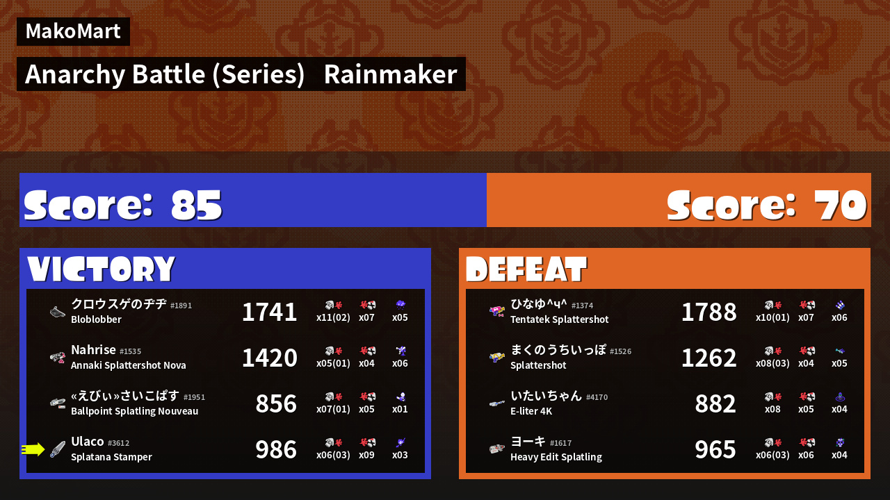 | Mode | Rainmaker - Anarchy Battle (Series) | ||