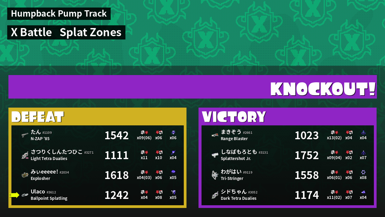 | Mode | Splat Zones - X Battle | ||