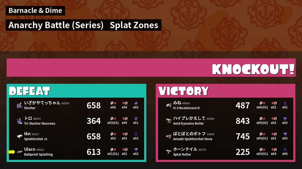 | Mode | Splat Zones - Anarchy Battle (Series) | ||