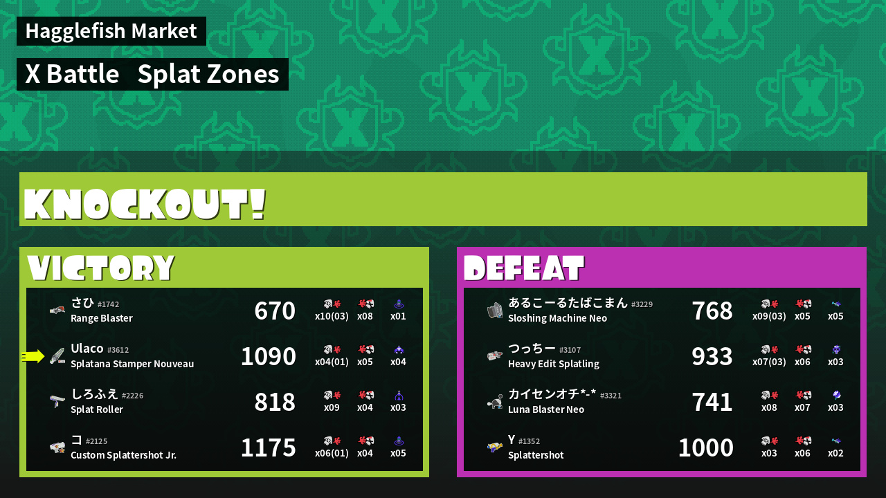 | Mode | Splat Zones - X Battle | ||
