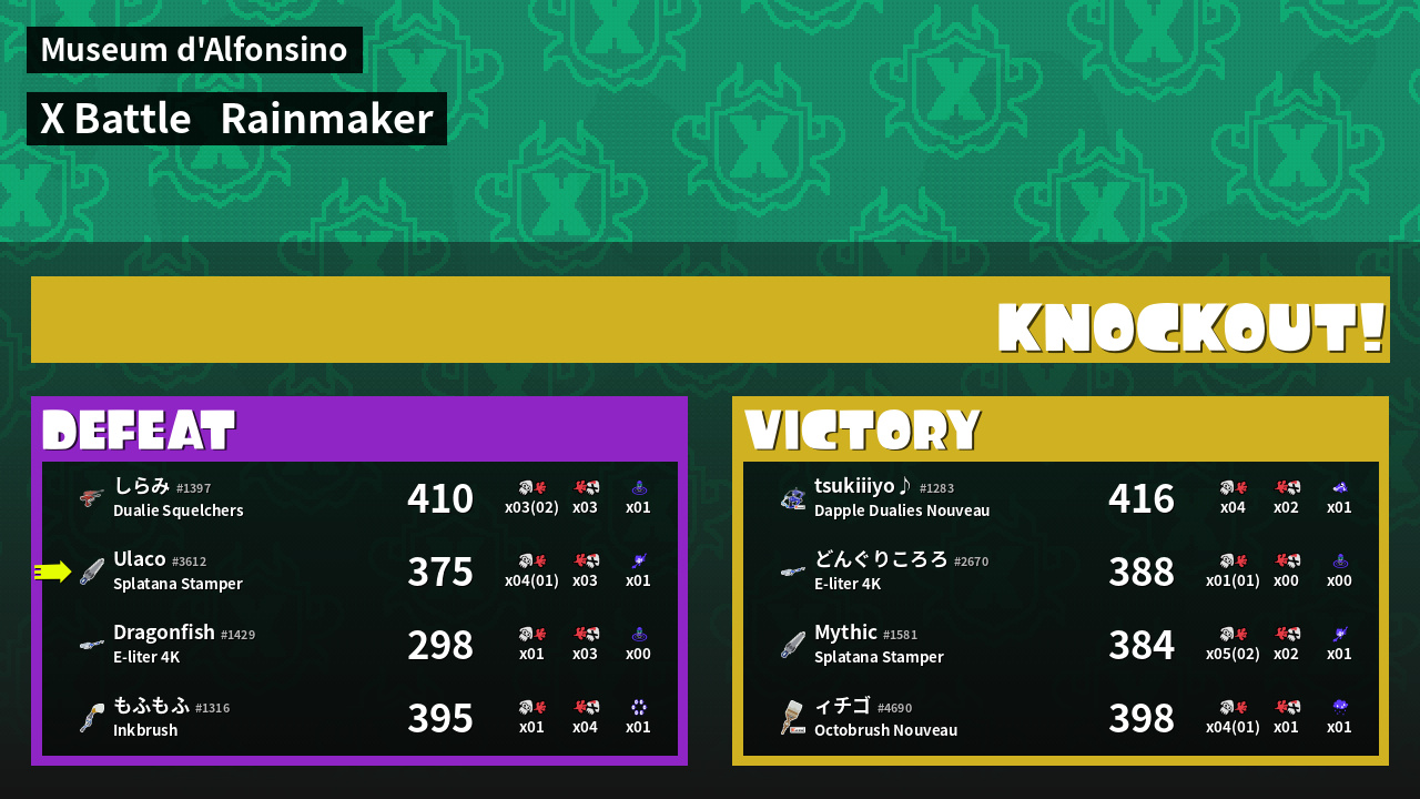 | Medals | #1 Overall Splatter #1 Enemy Splatter #1 Ink Consumer | ||