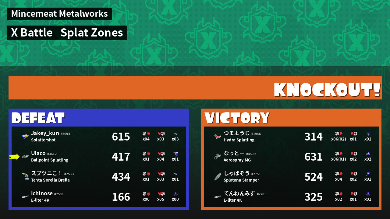 | Mode | Splat Zones - X Battle | ||