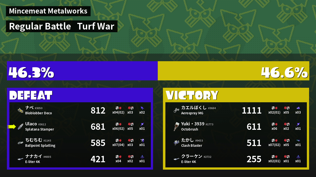 | Mode | Turf War - Regular Battle | ||