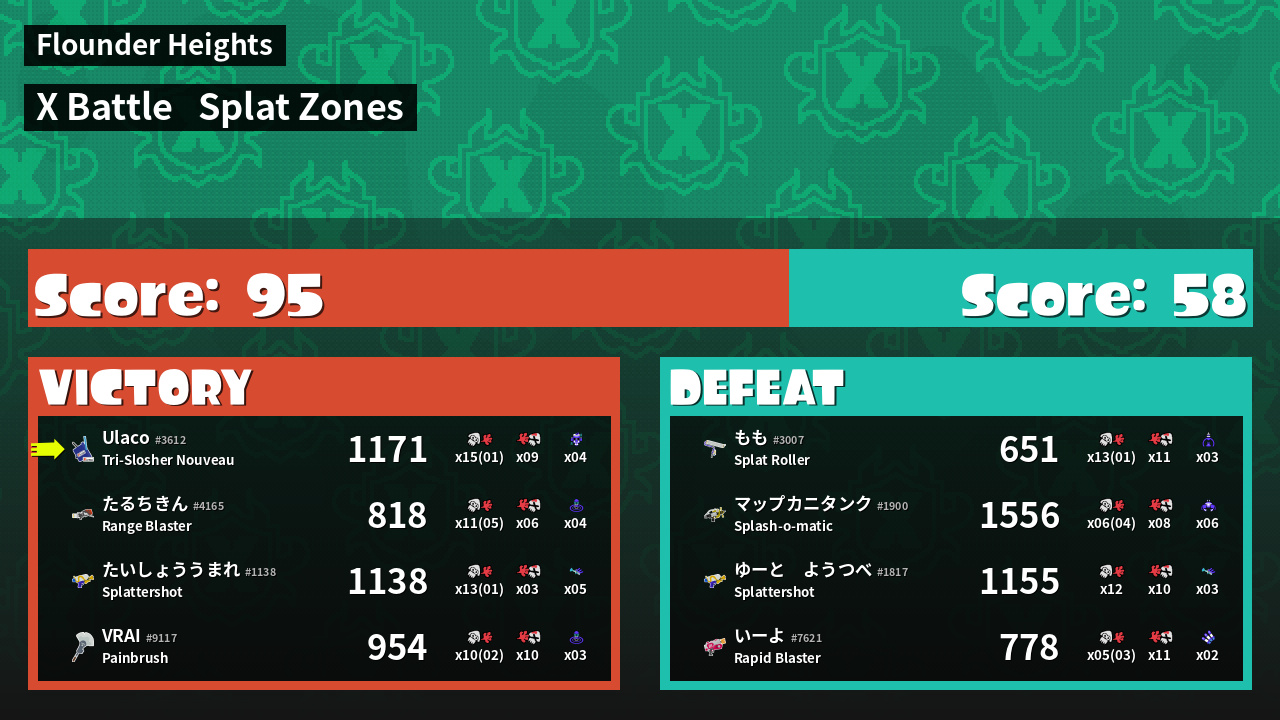 | Mode | Splat Zones - X Battle | ||