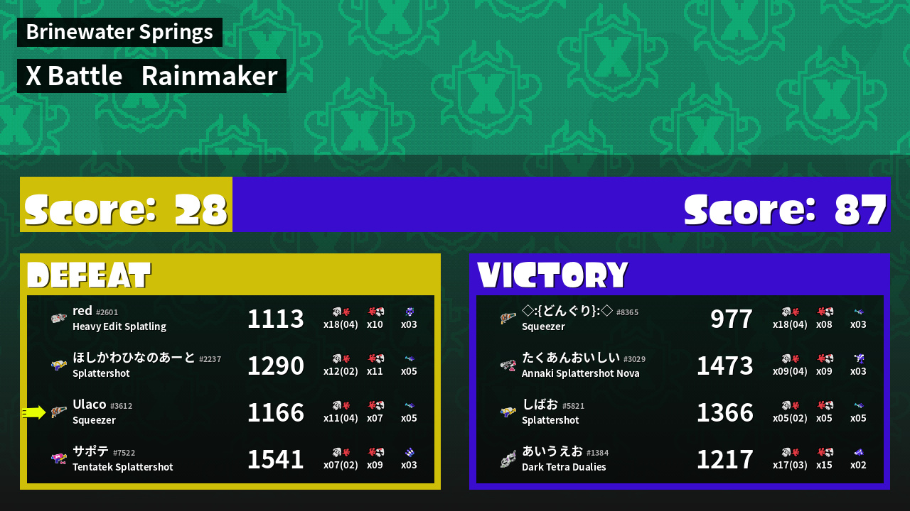 | Medals | #1 Super Jump Spot #1 Splat Assister #1 Rainmaker Stopper | ||