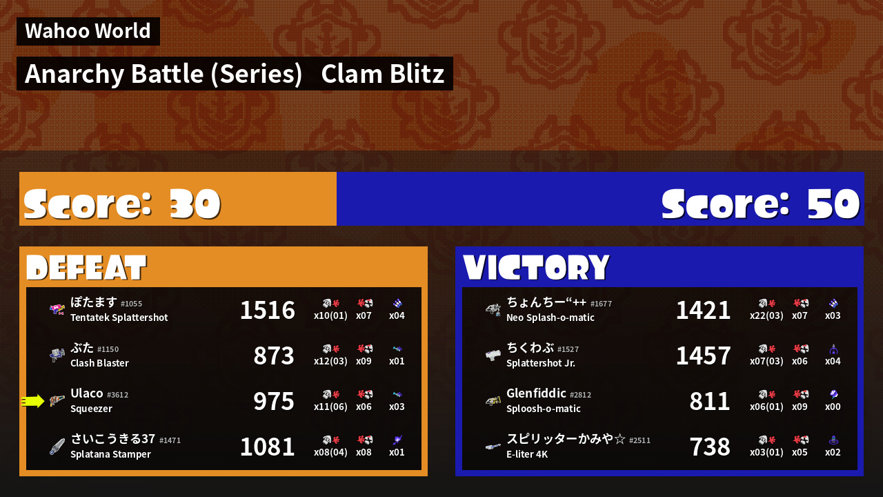 | Mode | Clam Blitz - Anarchy Battle (Series) | ||