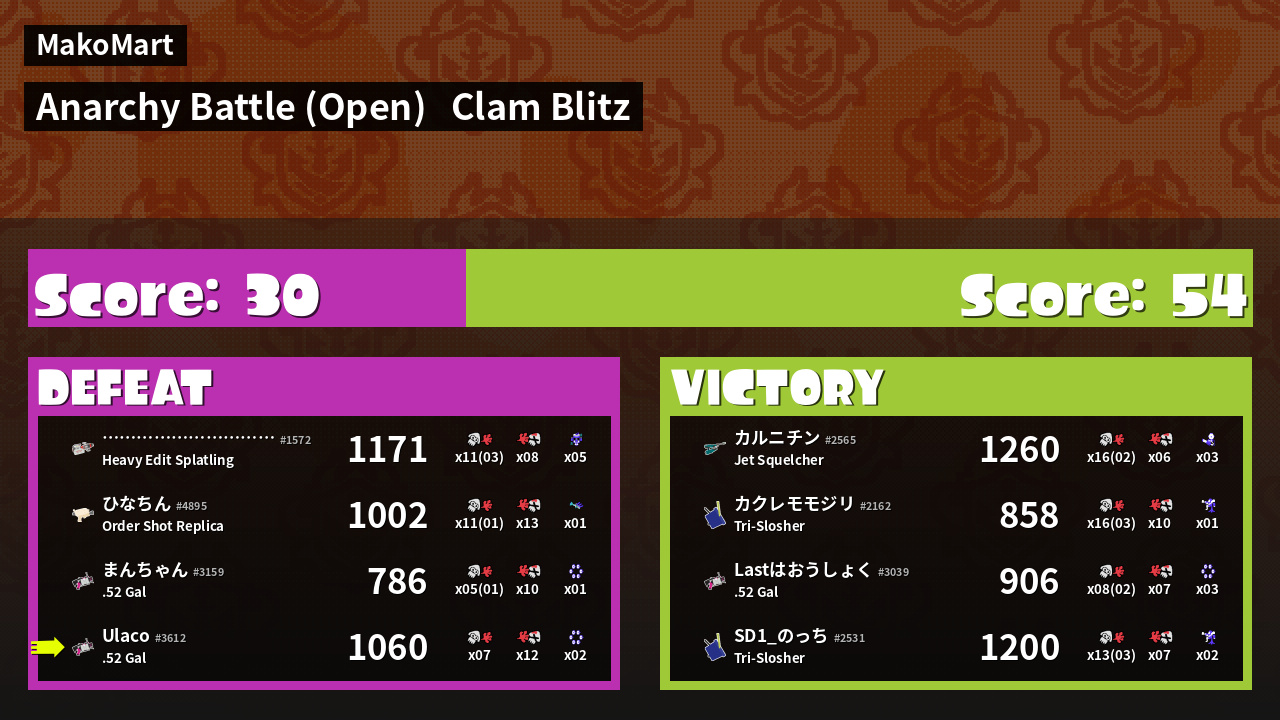 | Mode | Clam Blitz - Anarchy Battle (Open) | ||