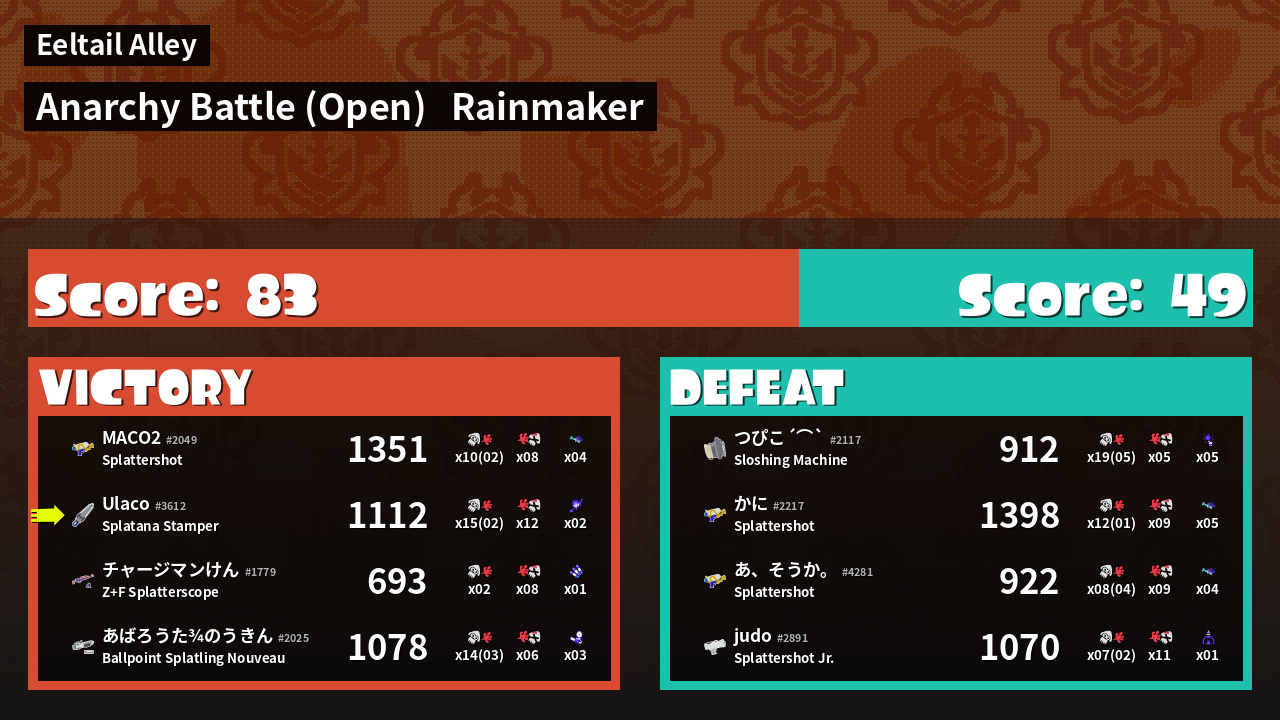 | Mode | Rainmaker - Anarchy Battle (Open) | ||