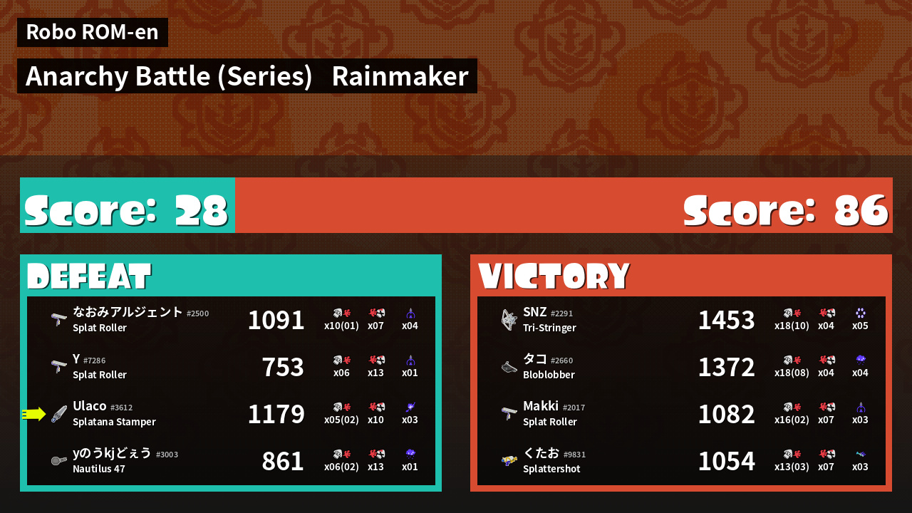 | Medals | #1 Turf Inker #1 Splat Assister #1 Ground Traveler | ||