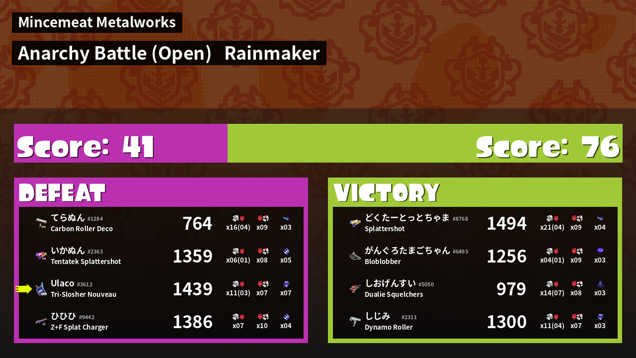 | Mode | Rainmaker - Anarchy Battle (Open) | ||
