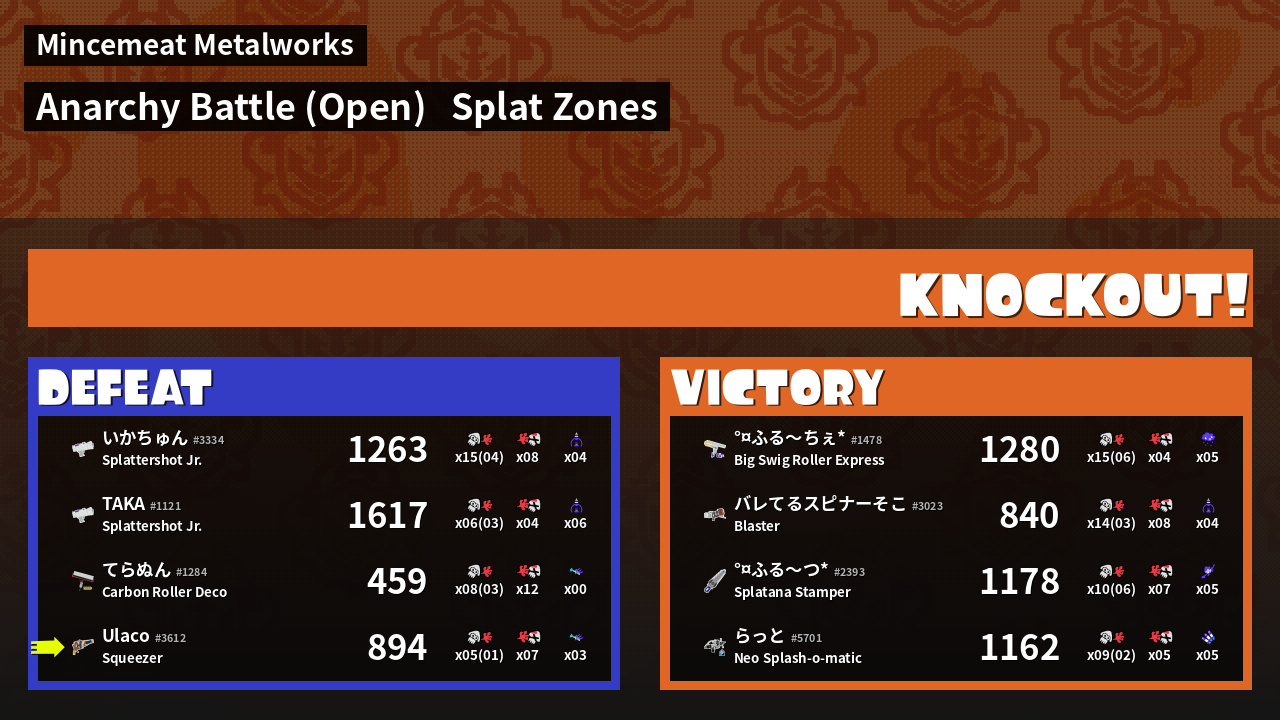 | Mode | Splat Zones - Anarchy Battle (Open) | ||