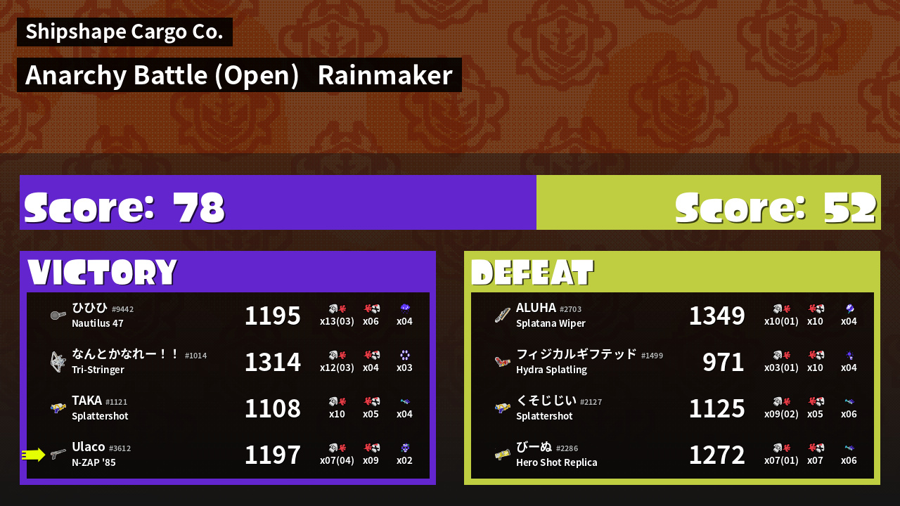 | Mode | Rainmaker - Anarchy Battle (Open) | ||