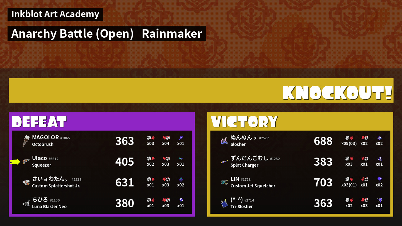 | Mode | Rainmaker - Anarchy Battle (Open) | ||