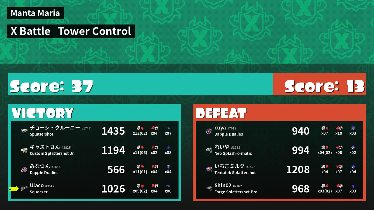 | Medals | #2 Score Booster #2 Popular Target #2 Splat Assister | ||