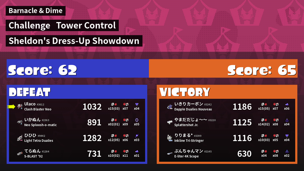 | Medals | #1 Overall Splatter #1 Popular Target #1 Enemy Splatter | ||