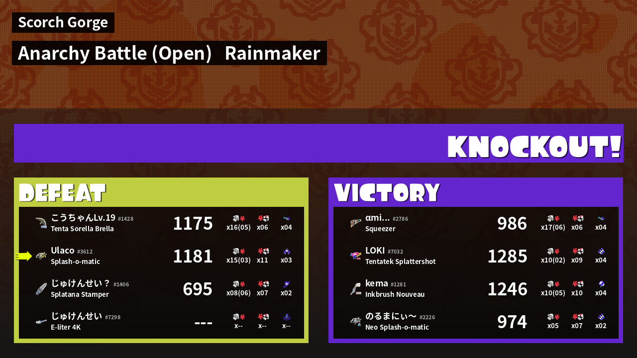 | Mode | Rainmaker - Anarchy Battle (Open) | ||