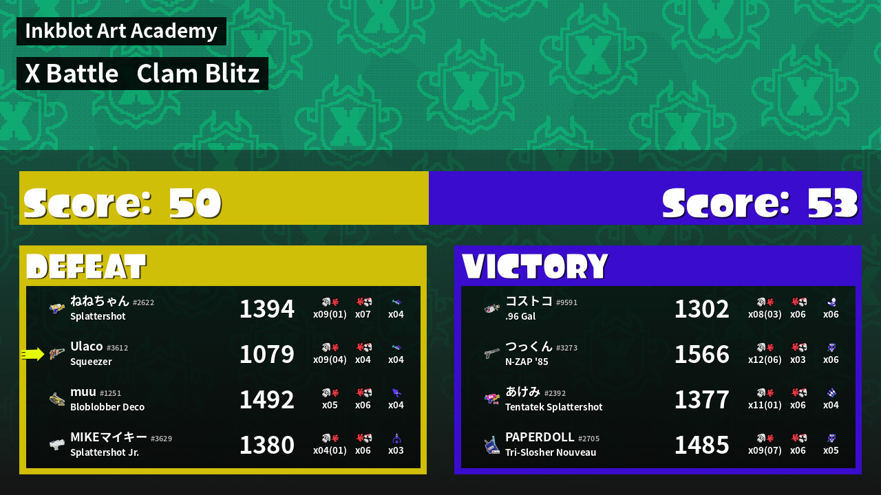 | Mode | Clam Blitz - X Battle | ||