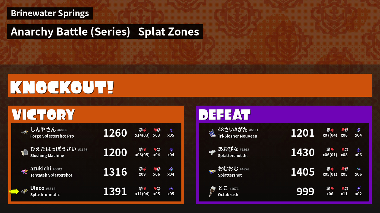 | Medals | #1 Turf Inker #1 Splat Zone Hero #1 Ground Traveler | ||