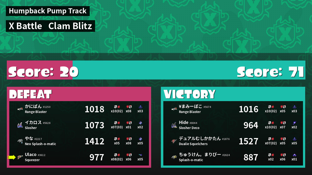 | Mode | Clam Blitz - X Battle | ||