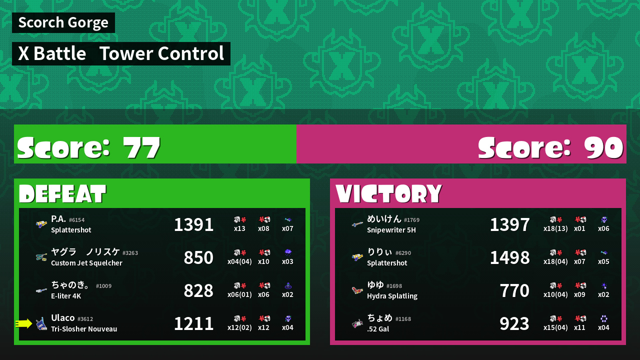 | Mode | Tower Control - X Battle | ||