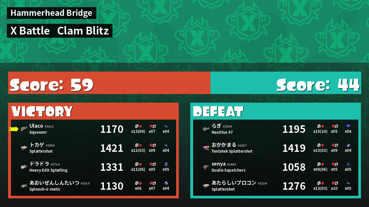 | Mode | Clam Blitz - X Battle | ||