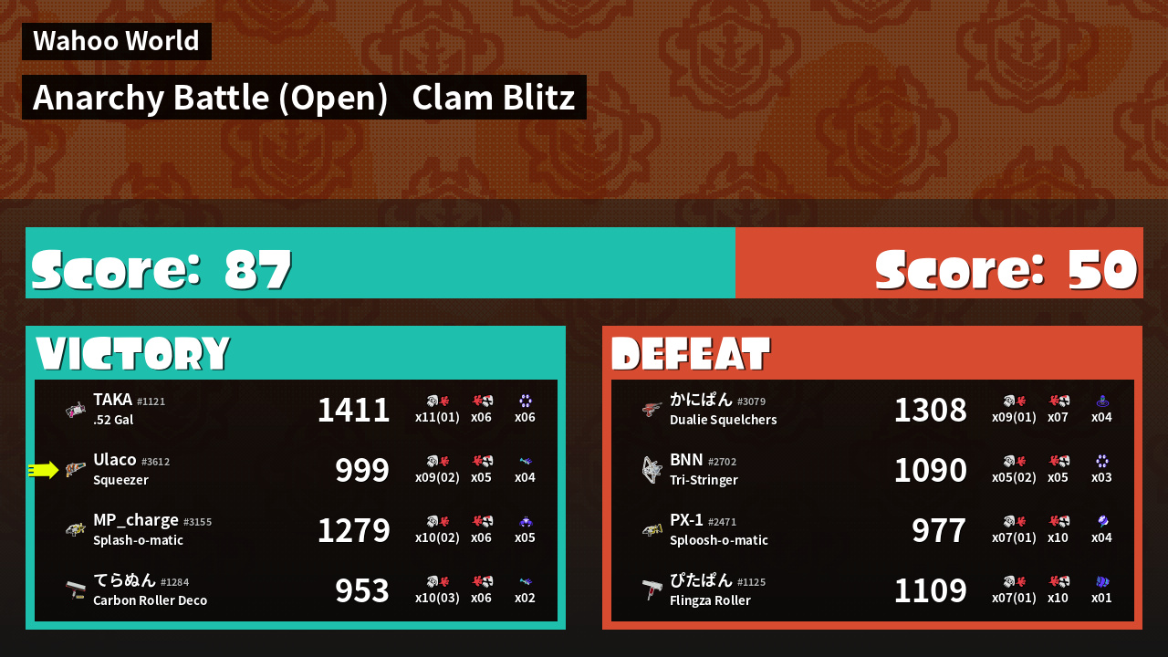 | Mode | Clam Blitz - Anarchy Battle (Open) | ||