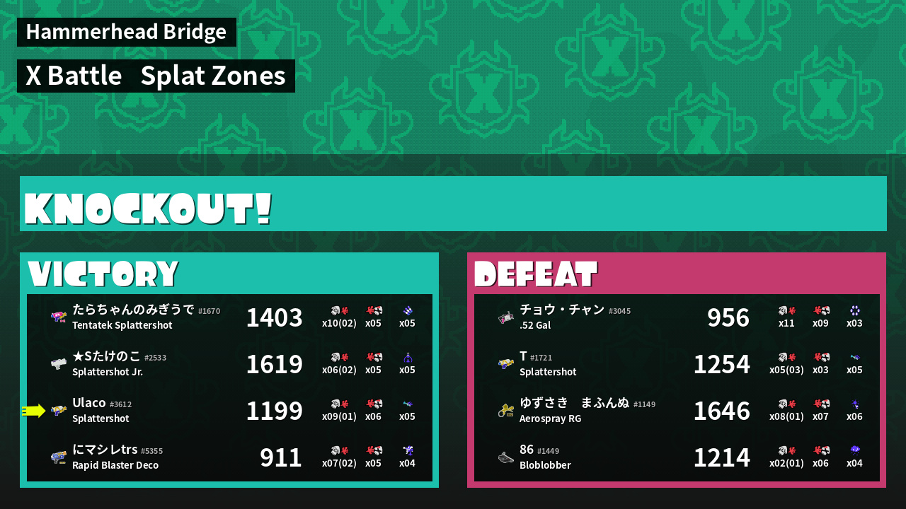 | Medals | #1 Splat Zone Guard #1 Enemy Splatter #1 Splat Zone Hero | ||