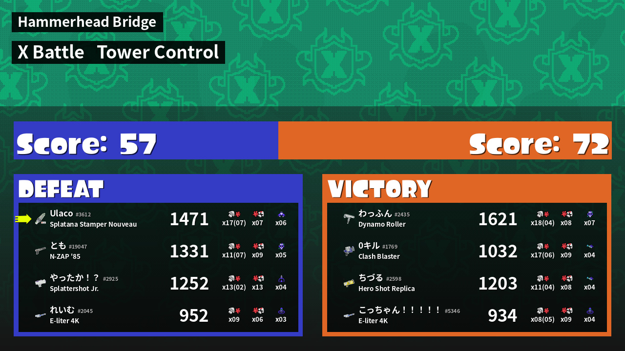 | Mode | Tower Control - X Battle | ||