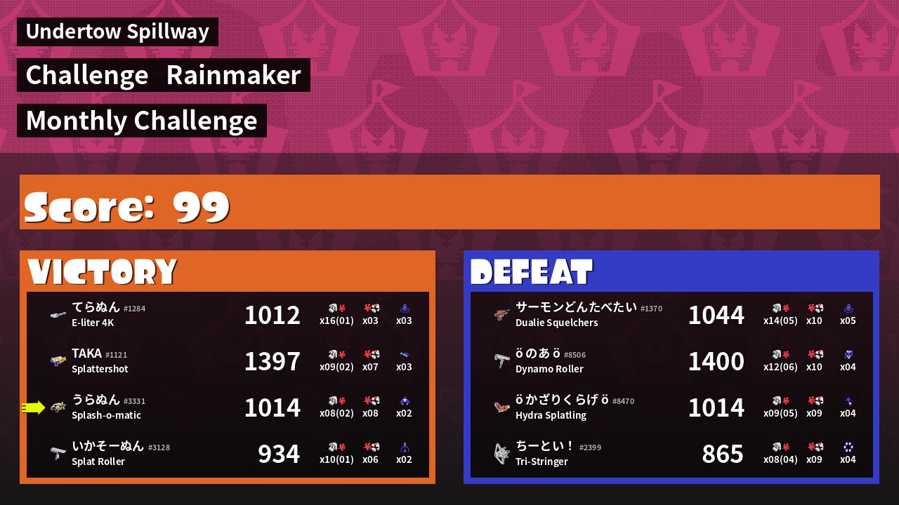| Medals | #1 Score Booster Record-Score Setter #1 Splat Assister | ||