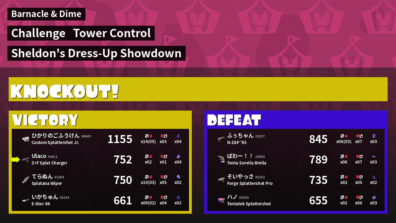 | Weapon | Z+F Splat Charger ( Splash Wall / Triple Inkstrike) | ||