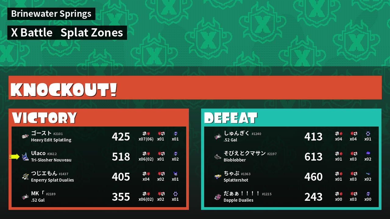 | Mode | Splat Zones - X Battle | ||